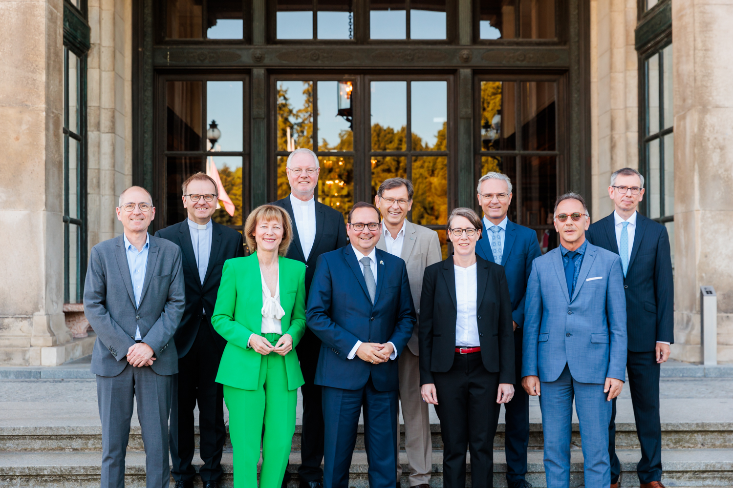 v.l.n.r.: Dietmar Dieckmann, Dr. Michael Dörnemann, Oberbürgermeisterin Karin Welge, Thomas Zander, Oberbürgermeister Thomas Kufen, Oberbürgermeister Dr. Frank Dudda, Dr. Michaela Muylkens, Dr. Frank Burbulla, Joachim Brunnhofer, Prof. Ralf Stremmel. Copyright: Krupp-Stiftung/Foto: Alex Muchnik.